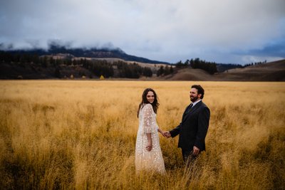 This is a collection of wedding photos from around Yellowstone National Park, including Lamar Valley, Hayden Valley, Lake Yellowstone, Mt. Washburn, and the Mammoth Hot Springs area. I photograph elopements in Yellowstone year-round, so you'll see photos from various seasons and times of day. Please reach out for help deciding on what season and time of day is best for the types of photos you'd like. More information for planning your elopement can be found in my helpful Yellowstone Wedding & Elopement Guide.